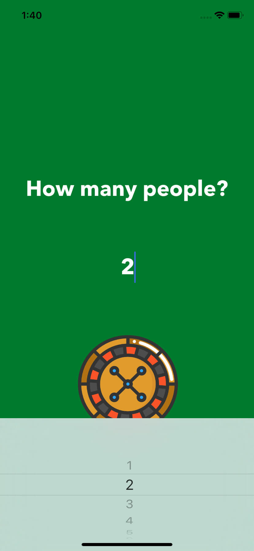 You should be able to select number of people, click on the Roulette Wheel and navigate to next screen. But nothing is showing yet.