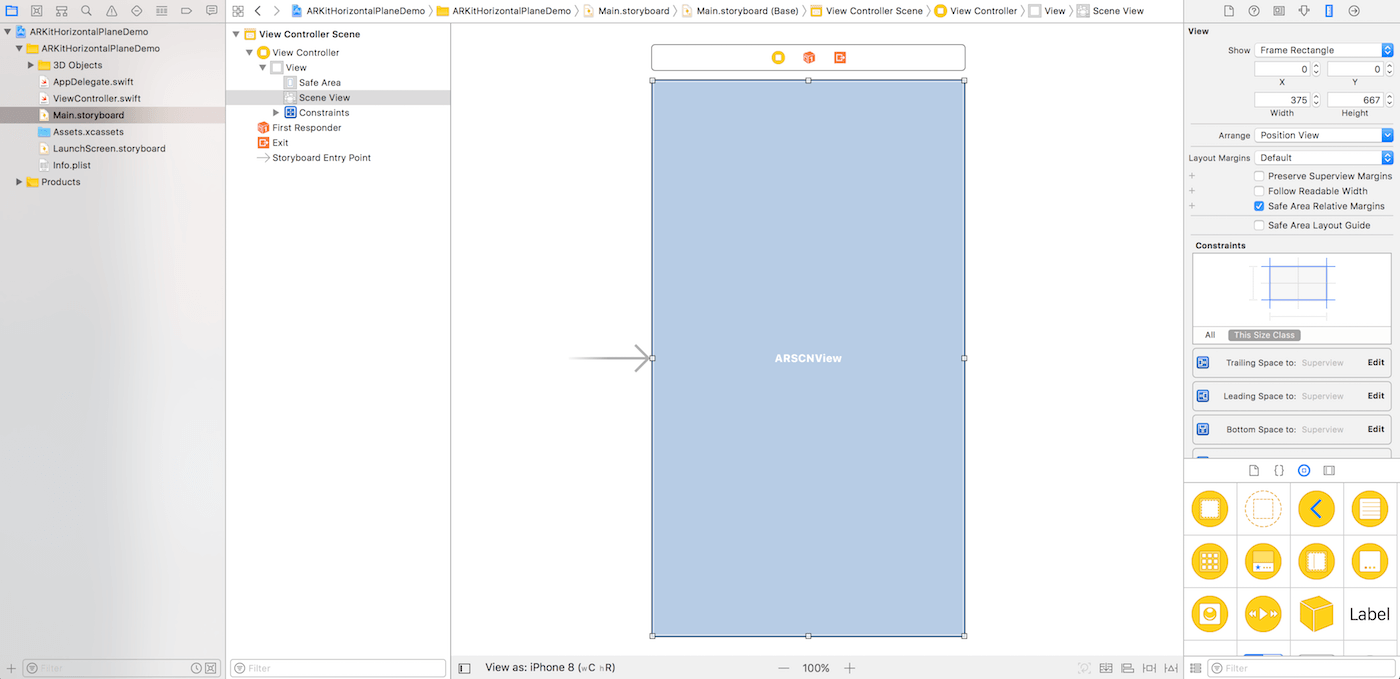We will begin with a starter project, so we can focus on the implementation of ARKit. Open the starter project in Xcode to take a look. I have already created the ARSCNView in the storyboard.