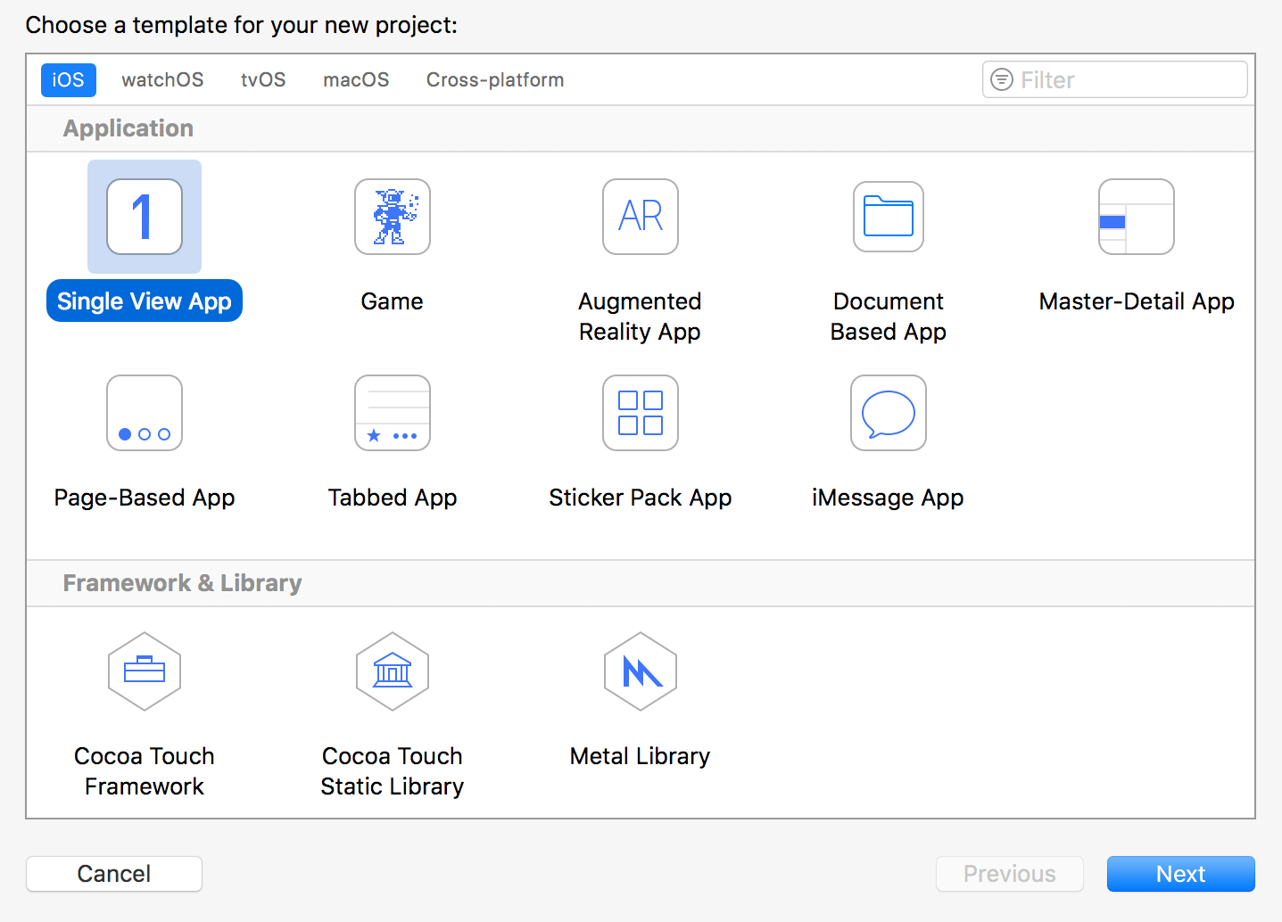To create our project, open Xcode 9 and create a new single-view application. Proceed to name your project and make sure to choose Swift as your language.