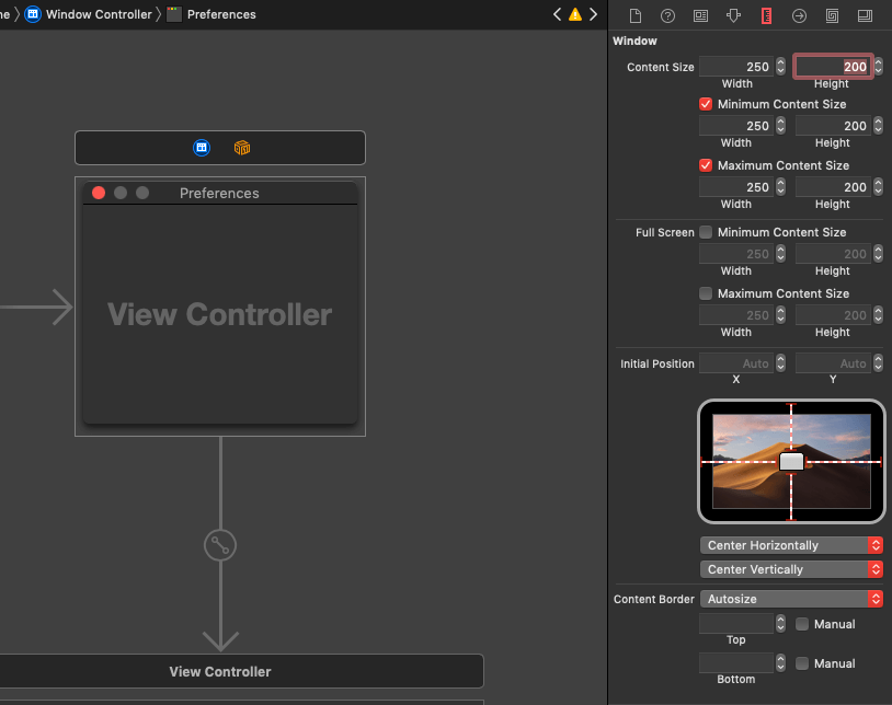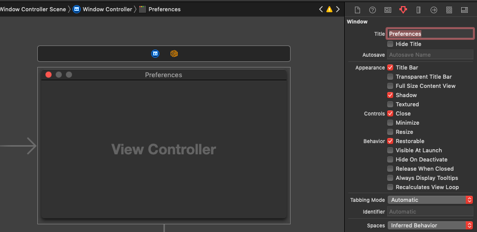 Note that we load from the storyboard file if only the preferencesWindowController property is nil. Once we check that, we proceed by initializing a NSStoryboard object, and then we instantiate the window controller as demonstrated above. Keep in mind that instantiateInitialController() can return a nil value, so unwrapping the result is mandatory to avoid potential crashes. If unwrapping the window controller is successful, we assign it to the preferencesWindowController property.