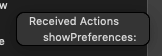 A small context menu will appear titled Received Actions, and right below you’ll see the showPreferences(_:) IBAction method we previously defined. Click to select it.