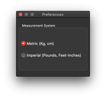 That choice will take place in a Preferences window that we will create just for that. Actually, we will grab the chance to learn how to make a Preferences window based on our need to switch between measurement systems. We will keep things simple, as we will have just radio buttons that will let us change the current measurement systems, but what we will go through is more than enough to demonstrate the entire process of making Preferences.
