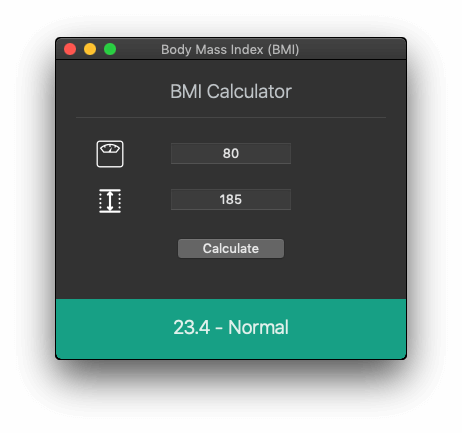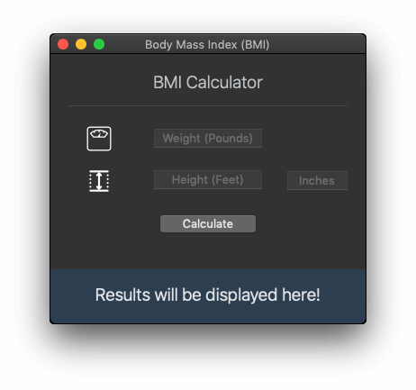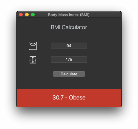 So, our demo app today that will be our vessel on new macOS programming explorations is a Body Mass Index (BMI) calculator: