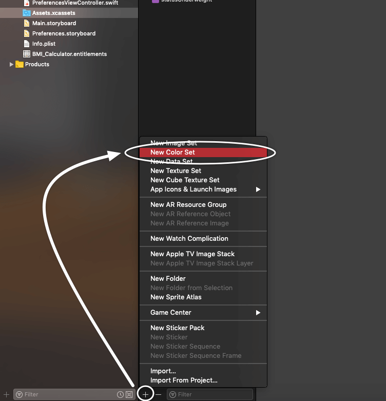 Let’s see now how to set a custom color to the title label that will adapt to theme changes. Open the Assets catalog by clicking to the Assets.xcassets in Xcode. This is the place where normally all assets about an app are being added. Then: