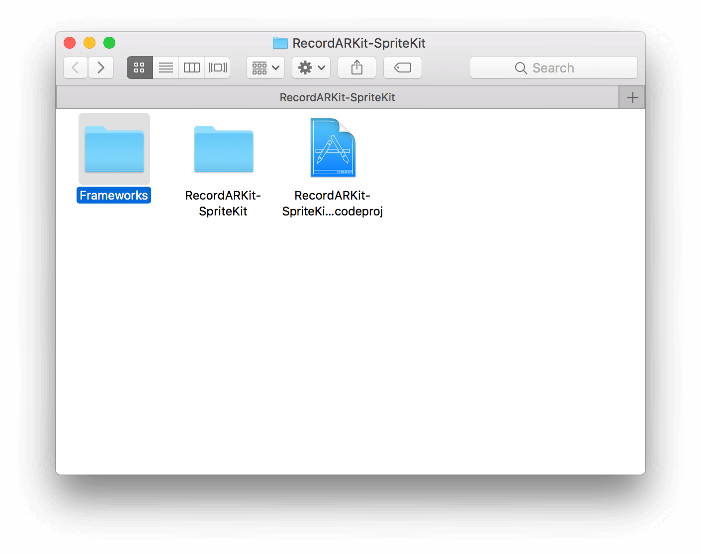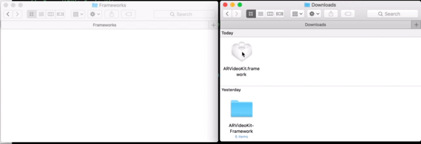 - Copy the downloaded ARVideoKit.framework into the Frameworks folder