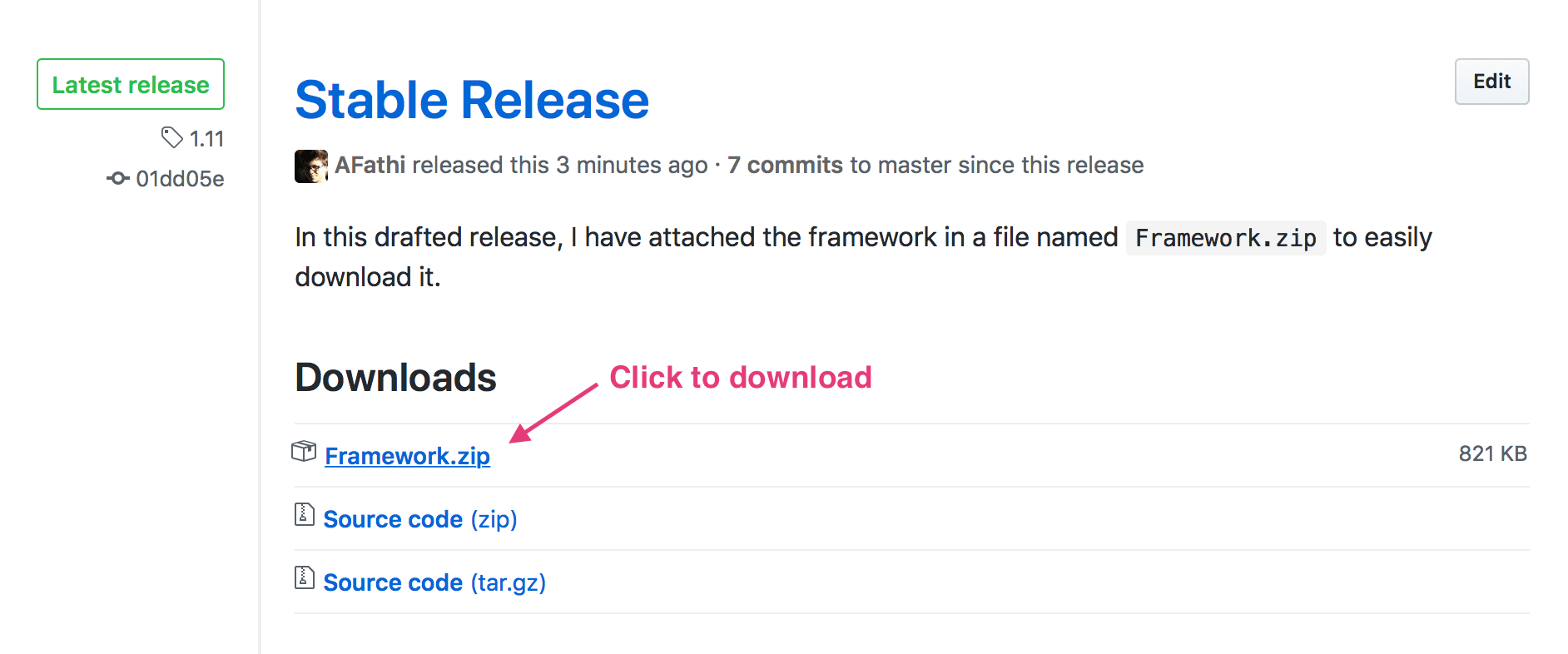 To begin, we will first download the latest release of ARVideoKit by going to the repository releases page and download Framework.zip file.