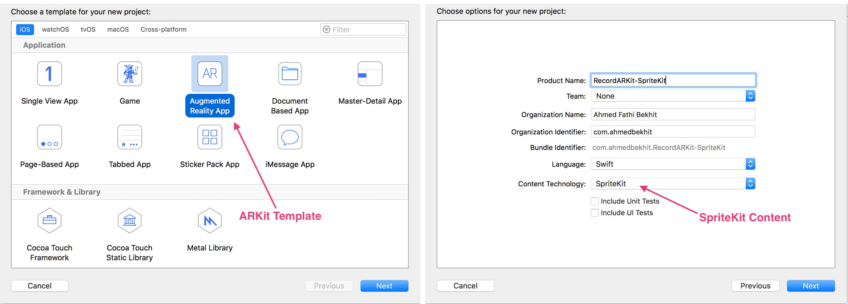 Then we will create a new ARKit project on Xcode. For this tutorial, we are creating ARKit + SpriteKit project.