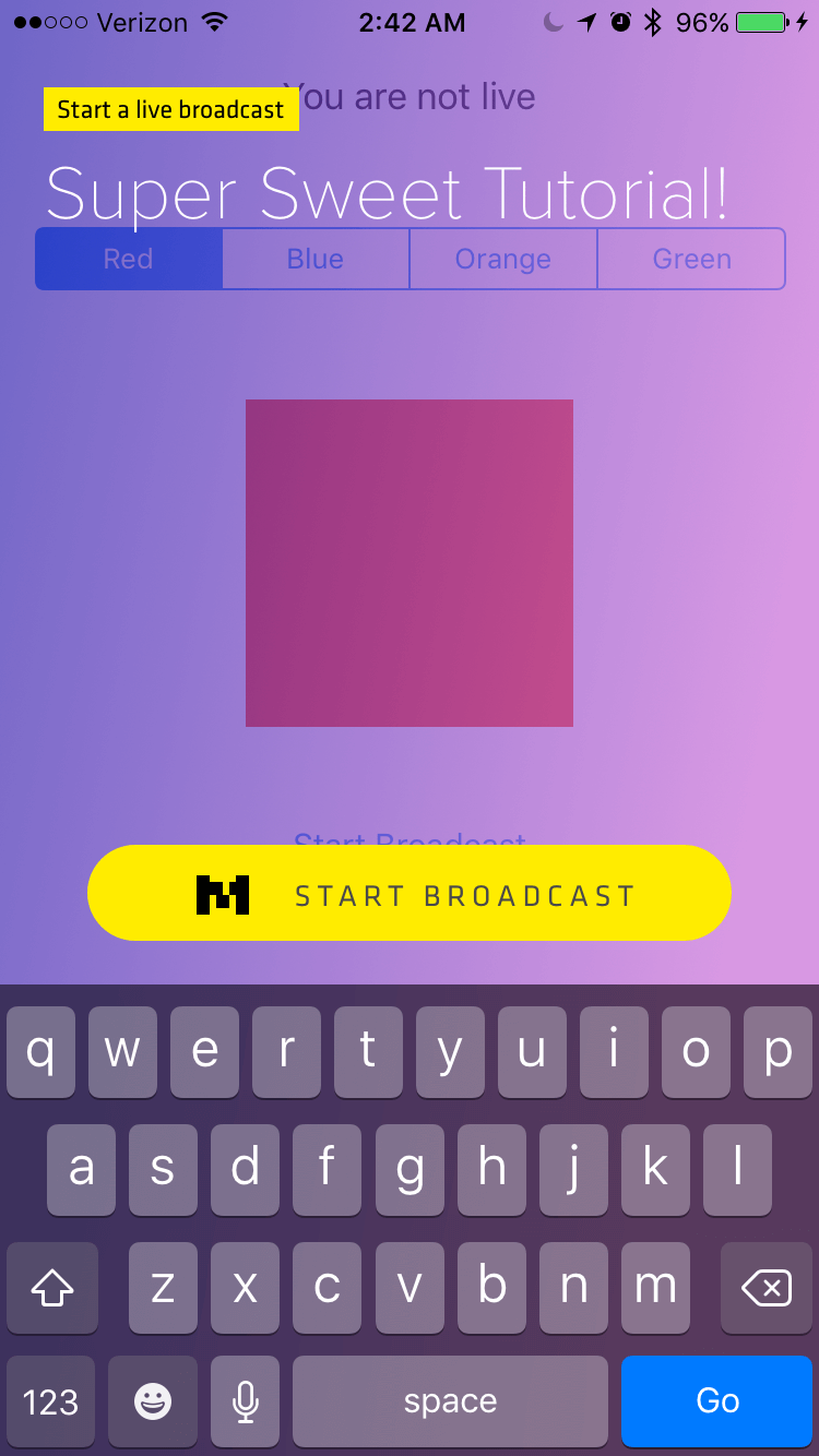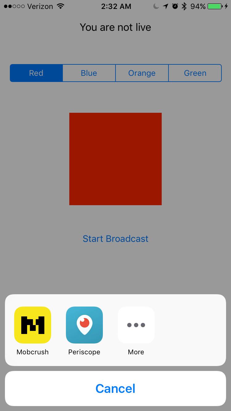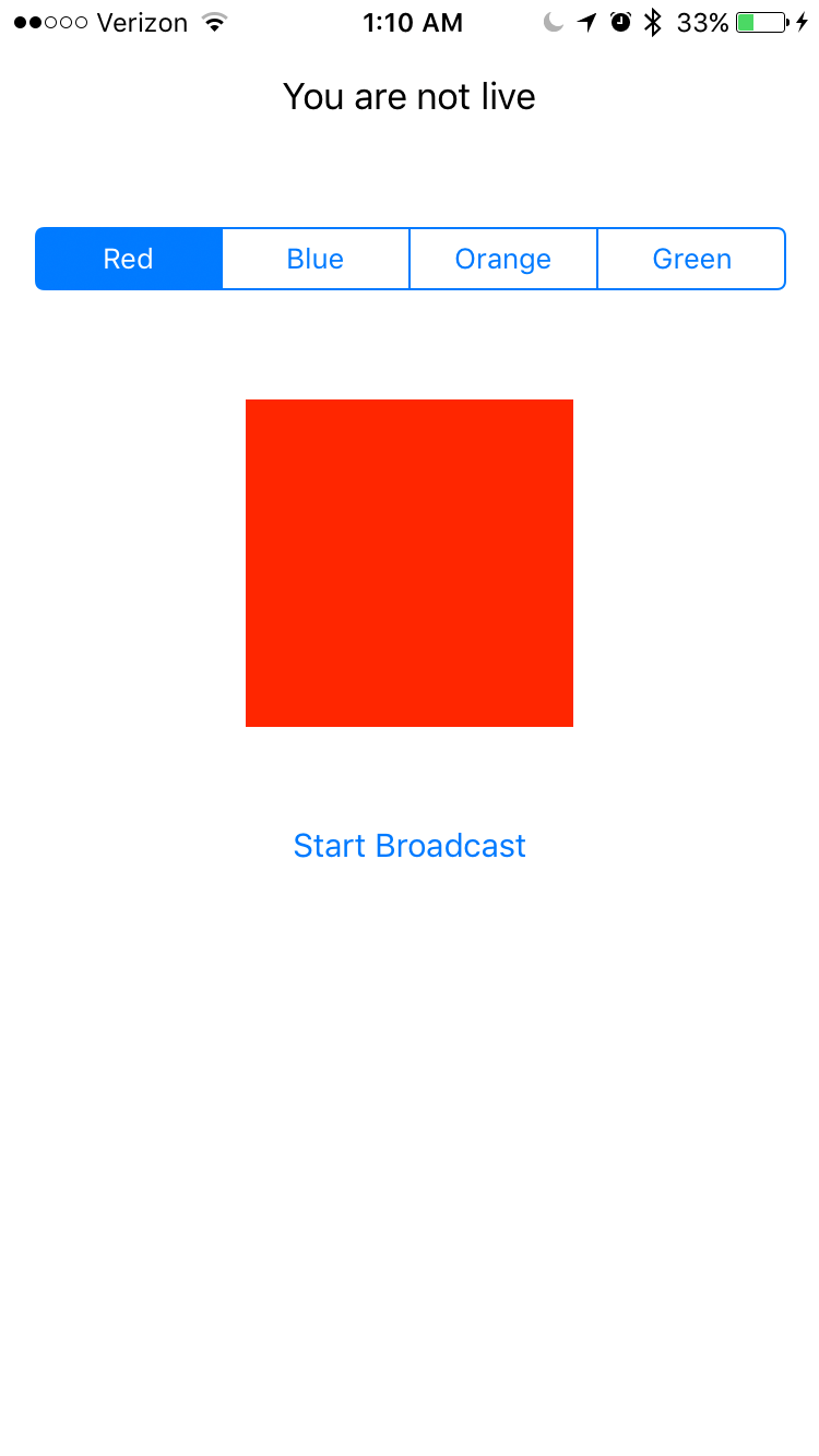 Now it’s time to test out your app. Run the project on your device (not the simulator) and tap “Start Broadcast”.