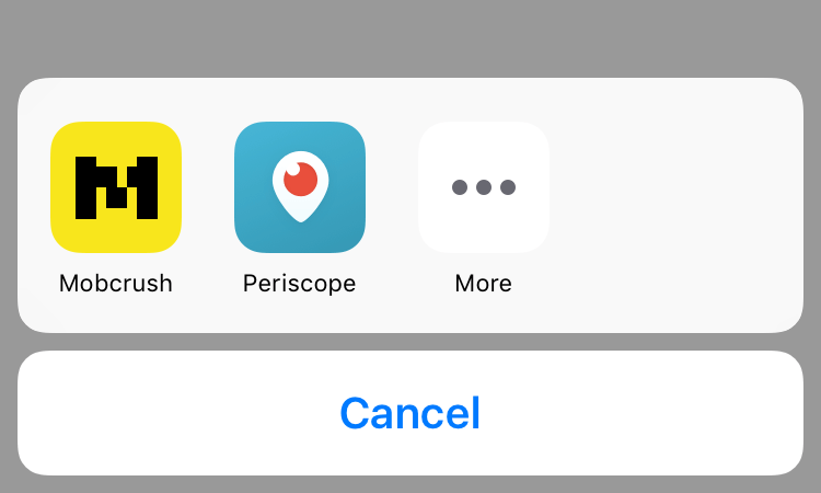 So let’s take a minute to talk about what happens after the user taps the start button. The app needs to show something called the Broadcast Activity View Controller. This is how a user choose which screaming service he/she wants to use.