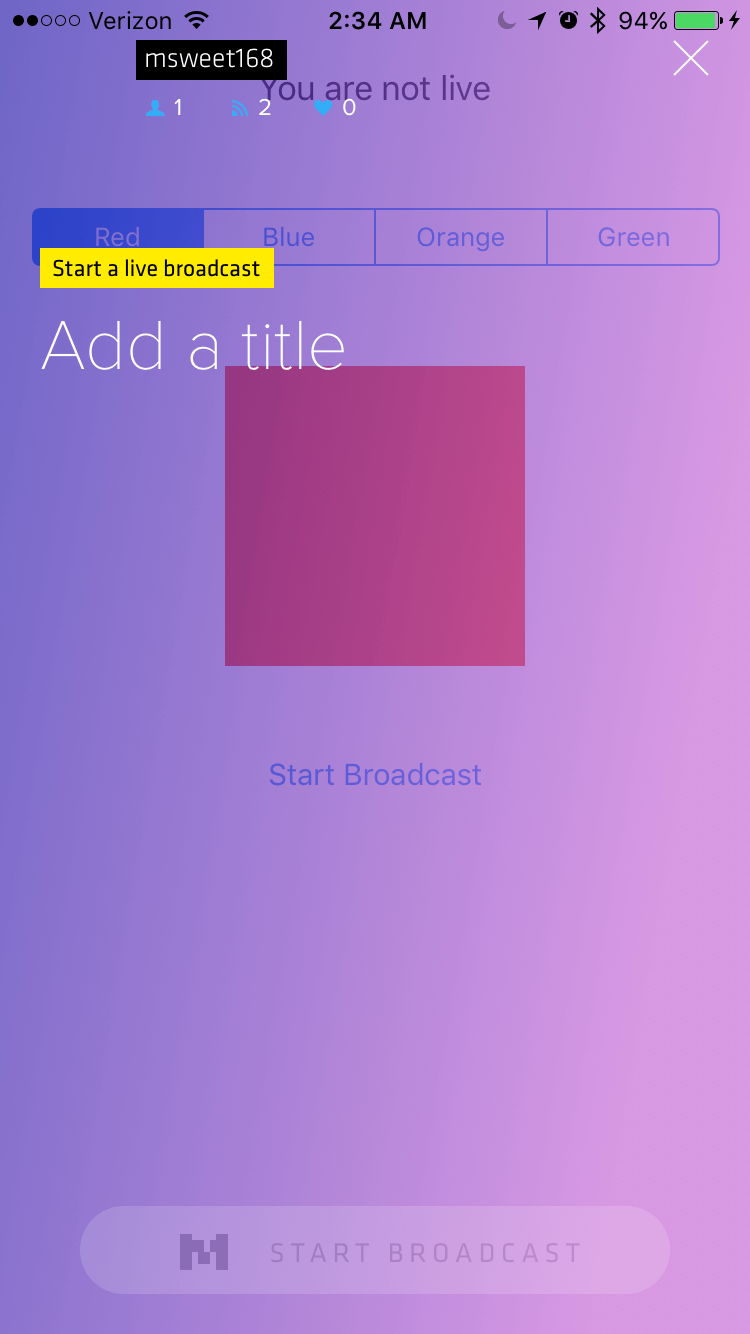 This is what I was talking about when I mentioned the service’s UI. Enter an awesome title for your broadcast and tap “Start Broadcast”.