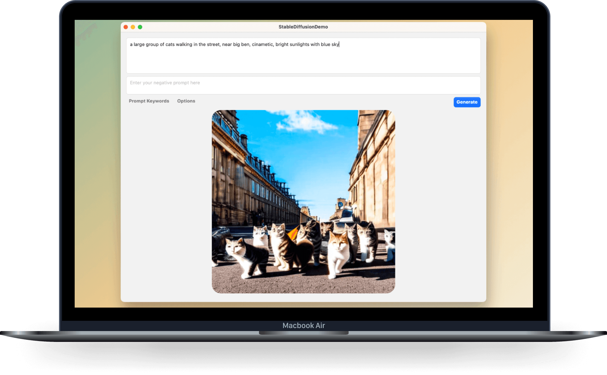 | Stable Diffusion App with SwiftUI | A sample Xcode project showing you how to build a Mac app with SwiftUI and Stable Diffusion | N/A | N/A | Included |