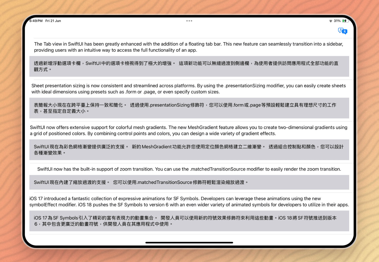 | Beginning iOS Programming with Swift for SwiftUI & UIKit | Two ebooks in PDF, ePub, mobi & HTML format + Project Source Code This is our flagship book that teaches you how to build a real world app from scratch using Swift, SwiftUI, and UIKit. It is a good companion book if you want to dive deeper into iOS app development. |