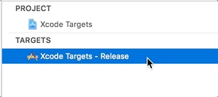 The Autocreate schemes checkbox had its intended effect, creating a new scheme — except it didn’t catch my renaming of my new target to “Xcode Targets – Debug.” Make sure to change the newly auto-created scheme from “Xcode Targets – Release copy” to “Xcode Targets – Debug” just like how I did it in the gif above. Set “Xcode Targets – Debug” scheme’s Build Configuration to Debug. You may find that it is already set as Debug, but check it anyway.