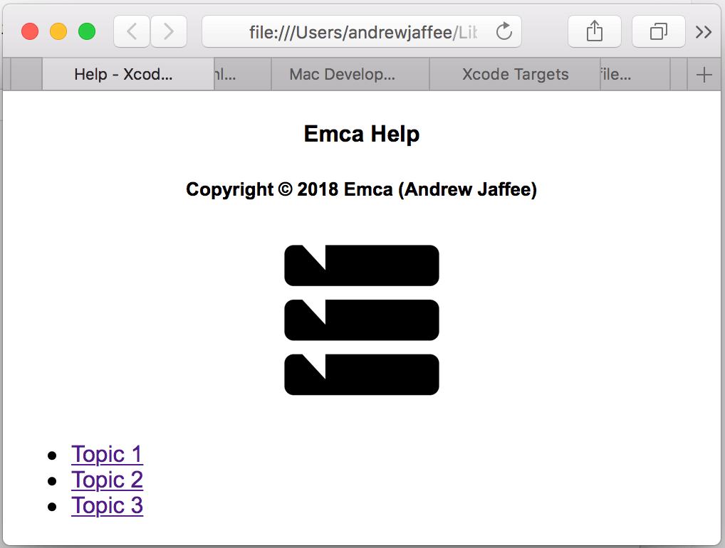 What if we click on the “Help” button in either target’s app? This is help customized to the “Acme – Release” target, running in Safari: