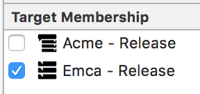 If you plan building, signing, and creating a signed installer for one or both of the “Xcode Manage Config” project’s targets, you need to take a few extra steps. For one thing, remember to go to Build Phases -> Copy Bundle Resources and add the “Acme” folder for copying in the “Acme – Release” target, and similarly add the “Emca” folder for copying in the “Emca – Release” target. Again, two products; two different targets.
