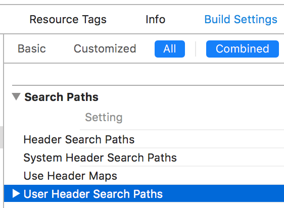 Remember that if I’m calling code from linked libraries, I’ll need the paths to the header files (.h, .hpp). I usually specify those in Build Settings -> Search Paths -> User Header Search Paths: