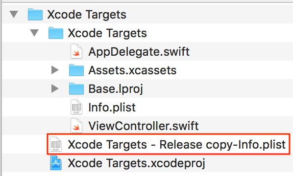 For my “Xcode Targets – Debug” target, I put my Info.plist here: