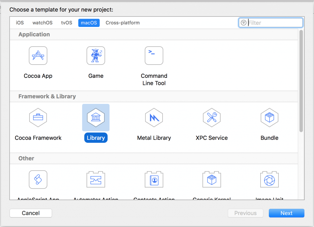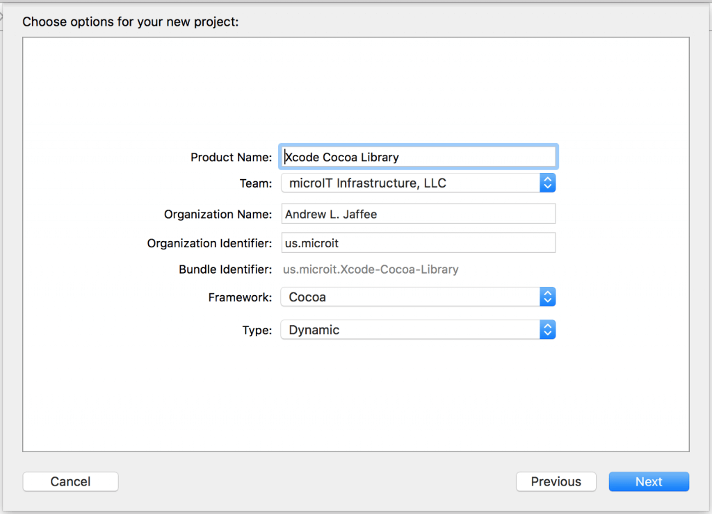 Click Next and save in a location of your choosing. In the Project Navigator, find the file Xcode_Cocoa_Library.m and rename it to Xcode_Cocoa_Library.mm to be sure that C++ and Objective-C++ are supported.