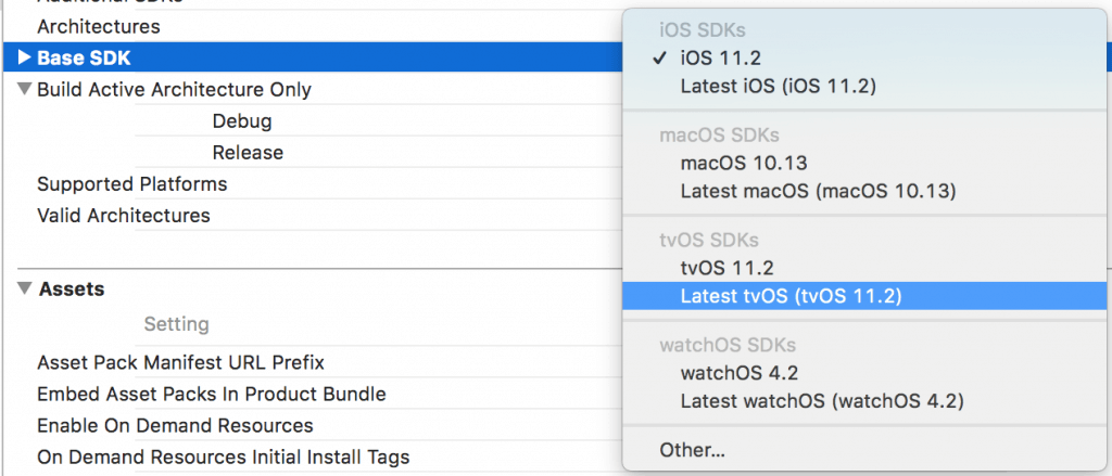 I would add that you can change debug and release settings in each of your targets, not just at the project level. Perhaps because of the length of time that I’ve developed Apple apps, and the complexity of most apps with which I’ve worked, I find myself and coworkers often need to change the values of Build Settings. I also find it very confusing and difficult to manage when almost every build setting at the project and target level have a Debug and Release option. See the following image — and remember that these are just a few of the available options: